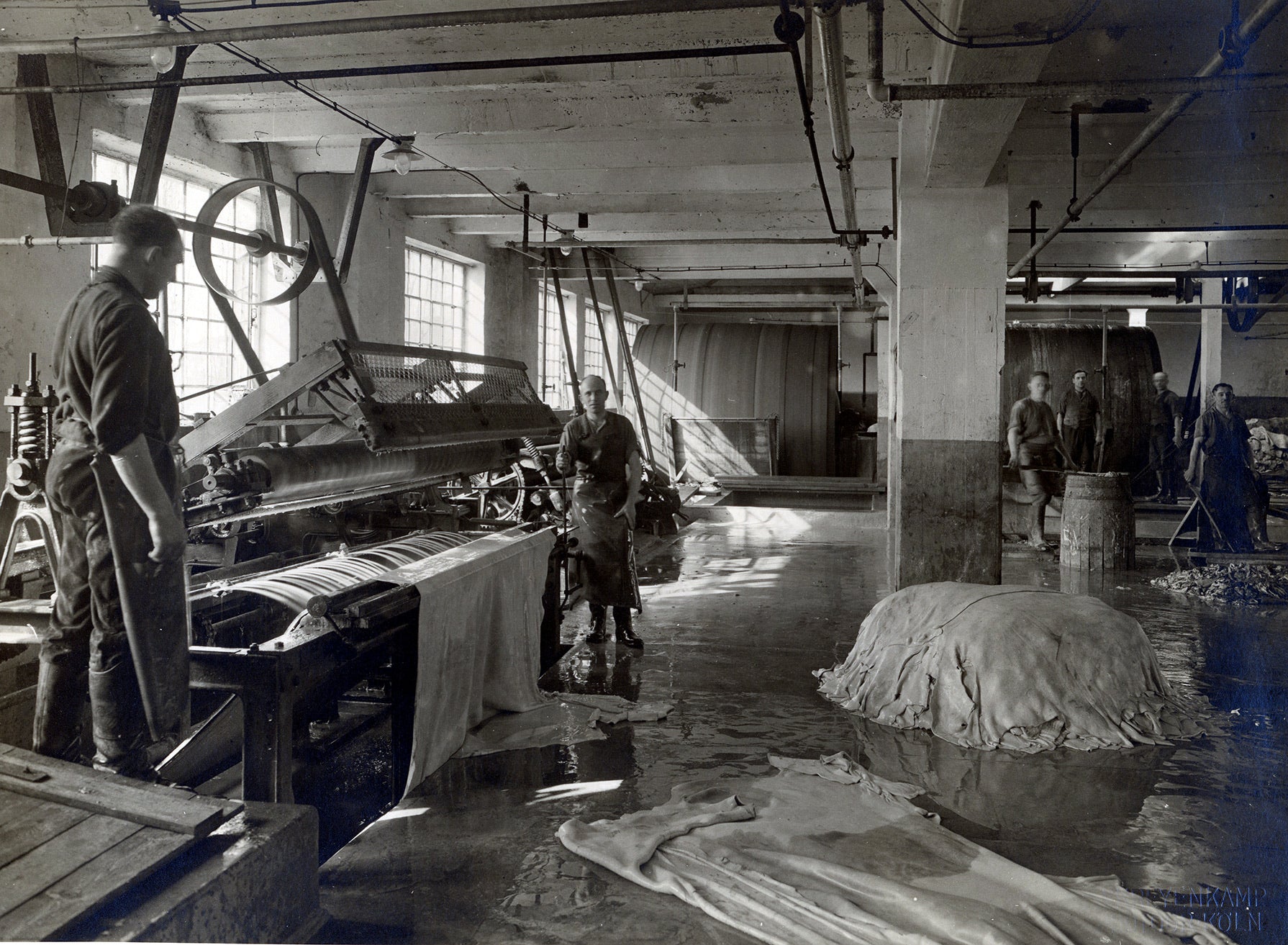 Beginn der Gerbung auf industrieller Basis durch Friedrich Offermann und seine Söhne Fritz und Jakob. Mit der Übernahme eines neuen Standortes im Jahr 1870 erlebte Corf Offermann eine transformative Ära. In den folgenden Jahren revolutionierte die Einführung mechanischer Verfahren und mineralischer Gerbstoffe revolutionierte nicht nur unsere Produktionsprozesse, sondern auch die Qualität unseres Leders. Diese Innovationen ermöglichten es uns, die Grenzen der Lederherstellung neu zu definieren und unseren Kunden Produkte von unübertroffener Qualität anzubieten.